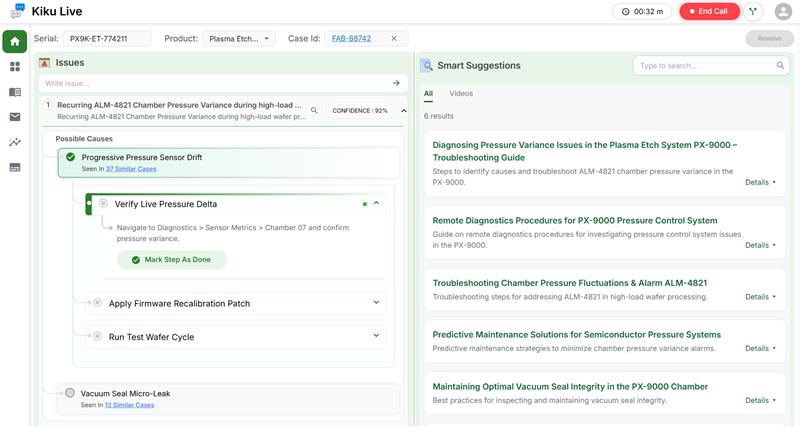Kiku combines dynamic ontology, hybrid retrieval, and outcome write-back so each resolved issue improves the next answer automatically.